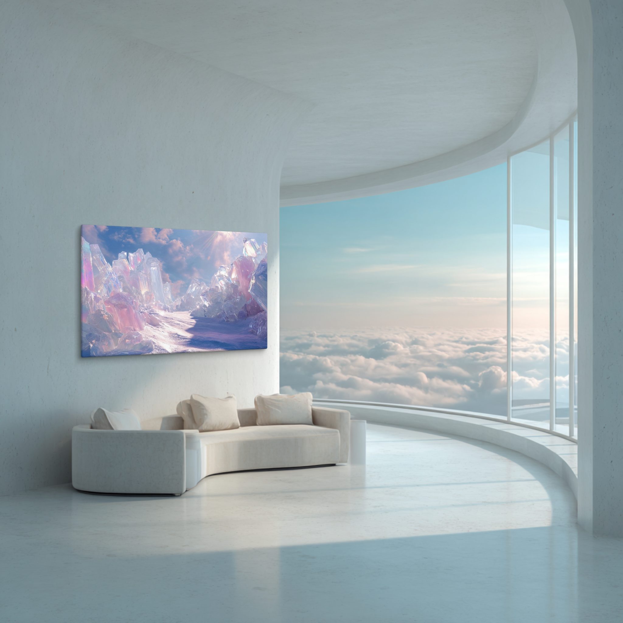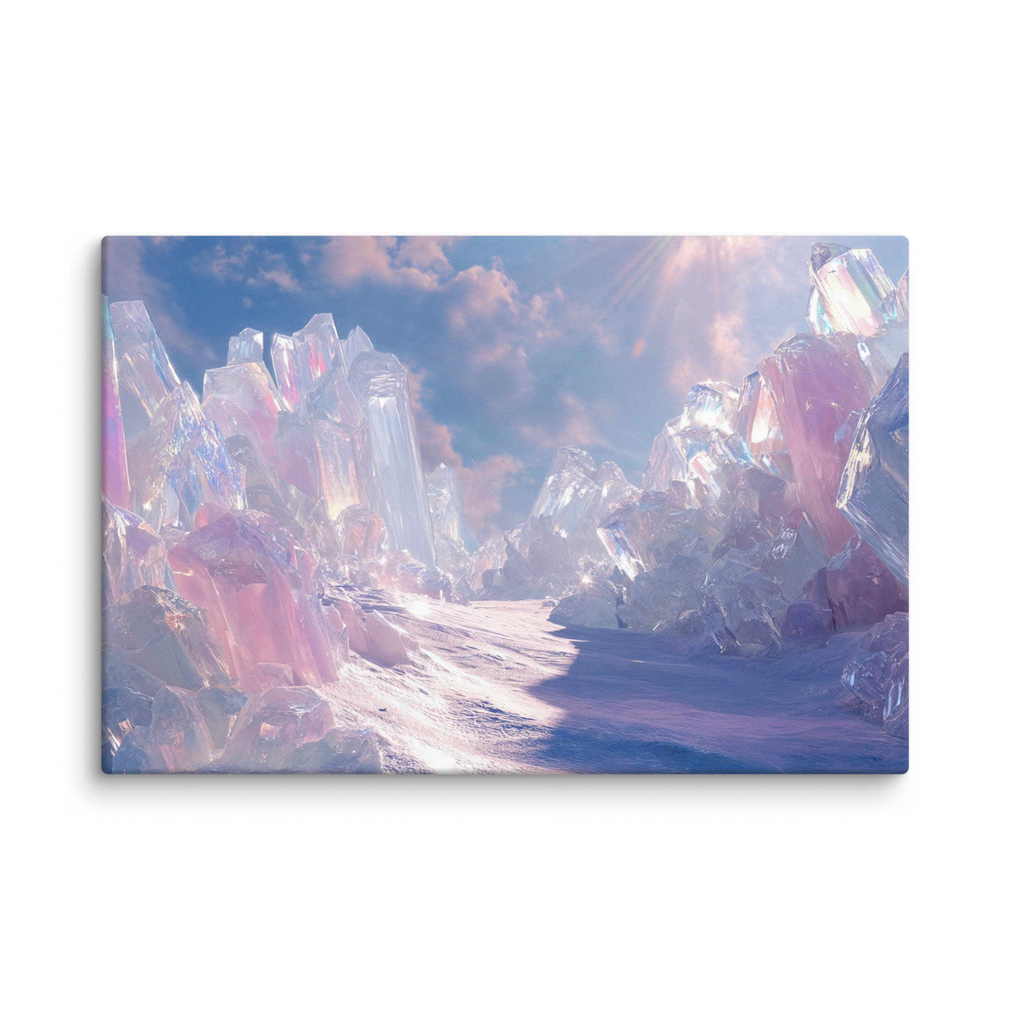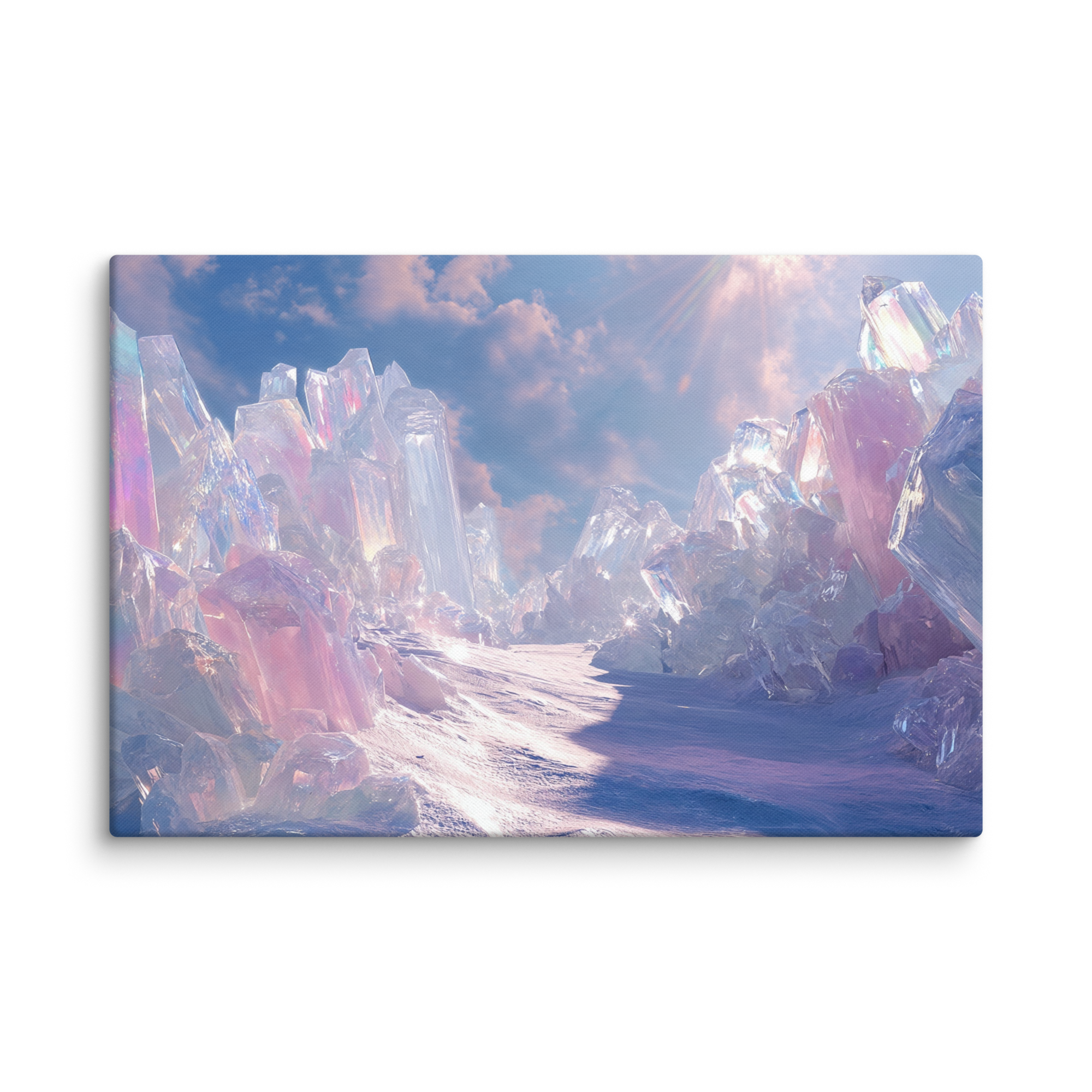 This fine art canvas reveals a crystalline valley touched by sunlight and softened by shade,