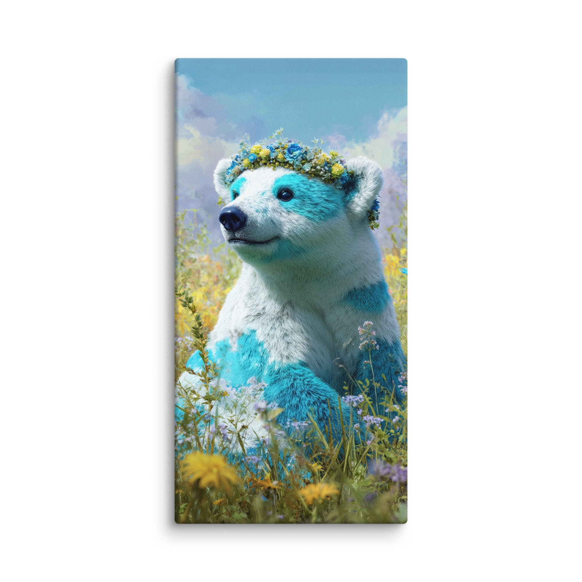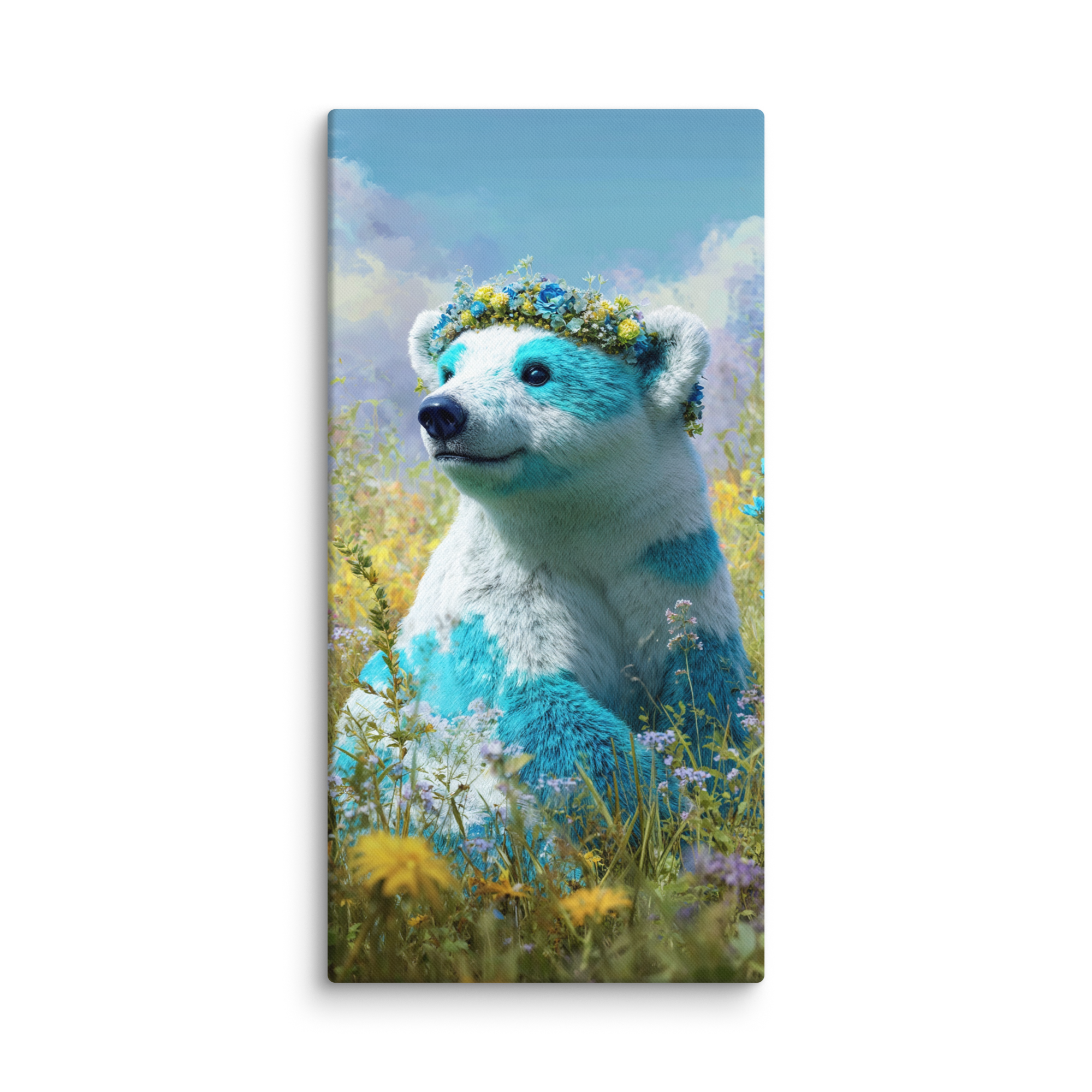 Bring a touch of magic and serenity into your space with the Fantasy Blue Bear Canvas Print. This enchanting artwork features a dreamy bear with sky-blue markings, adorned with a delicate flower crown, resting peacefully in a blooming meadow. With its vivid, fade-resistant print and gallery-quality canvas, it adds both charm and sophistication to your home or office décor. Perfect for those who seek art that inspires imagination and healing.