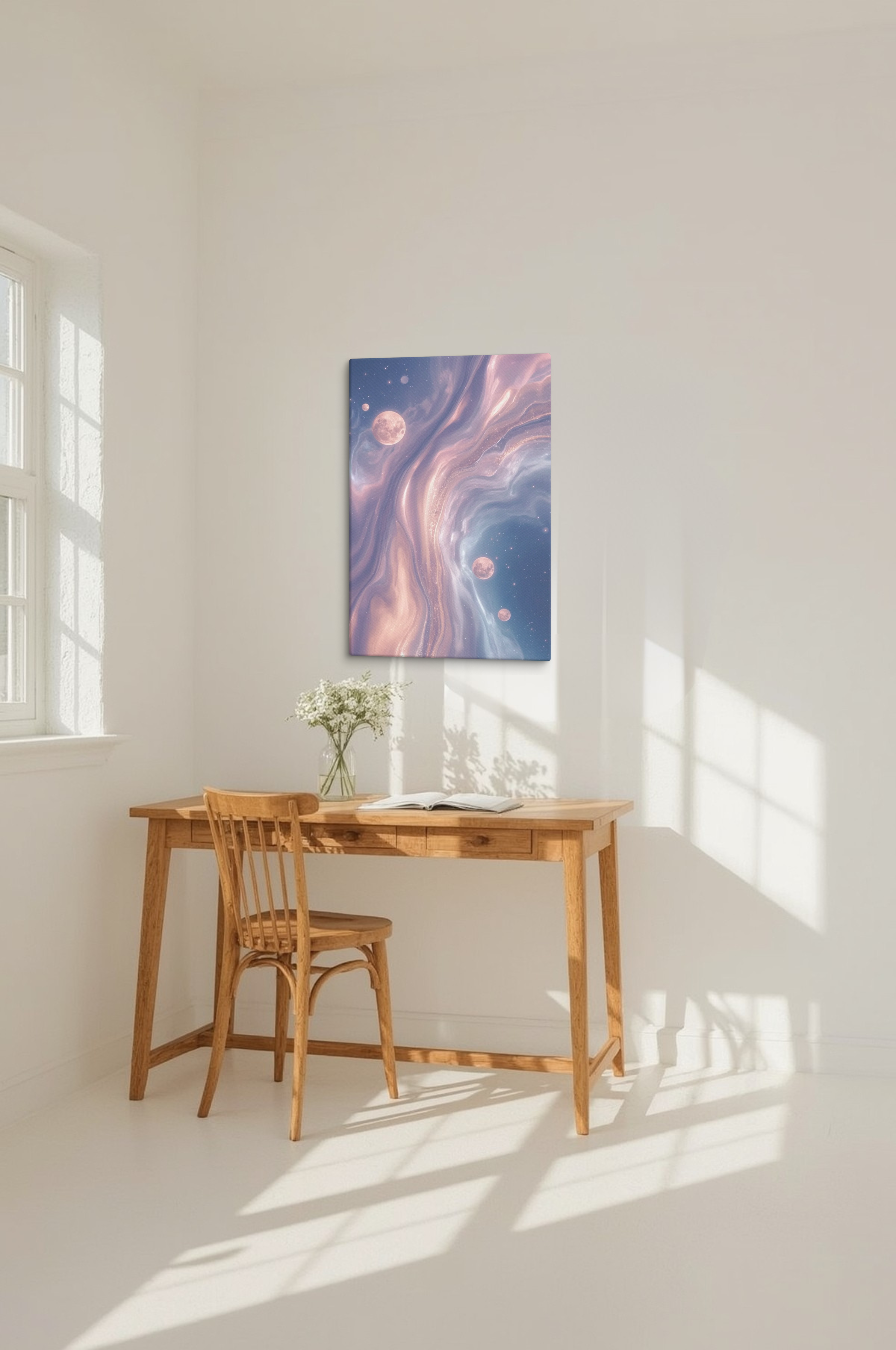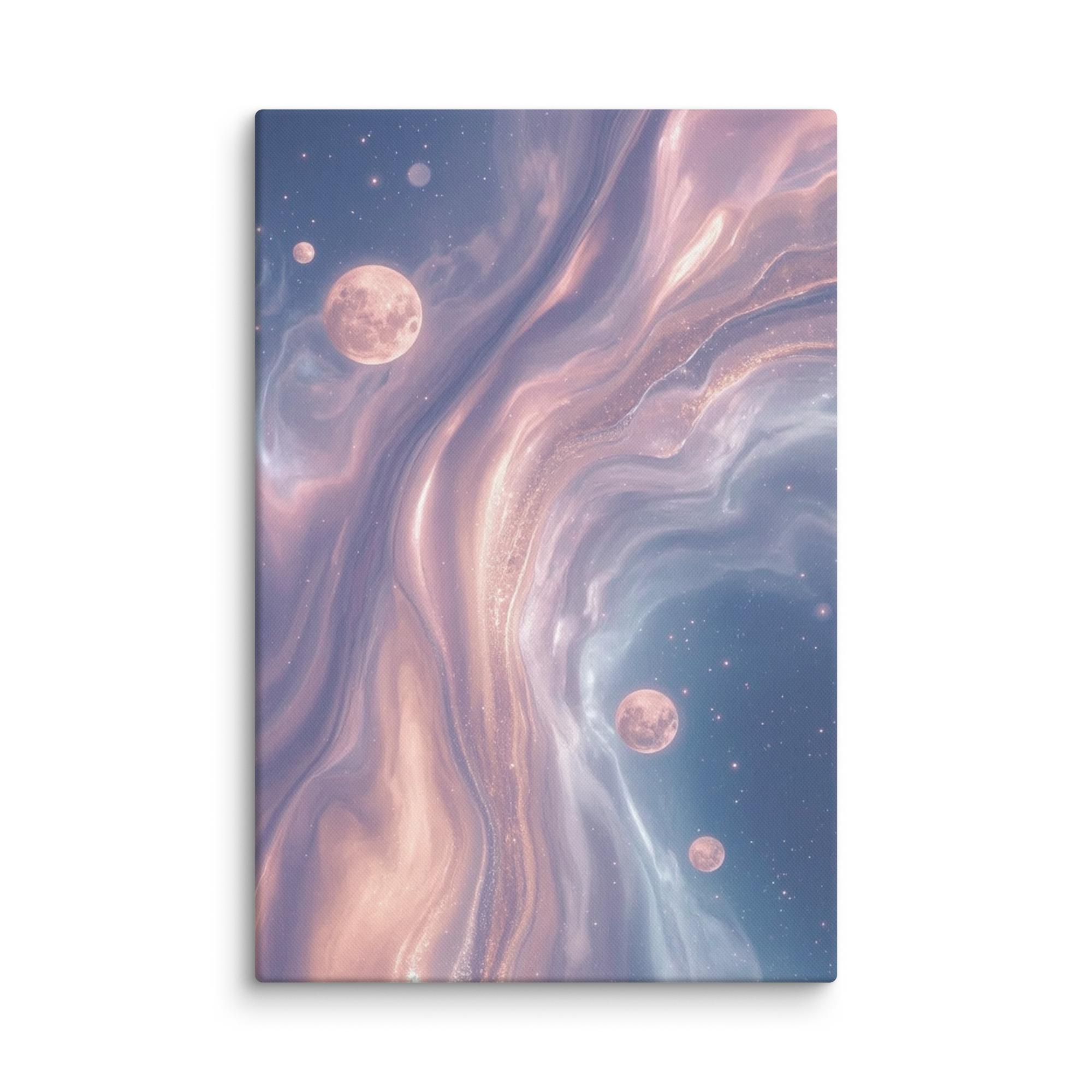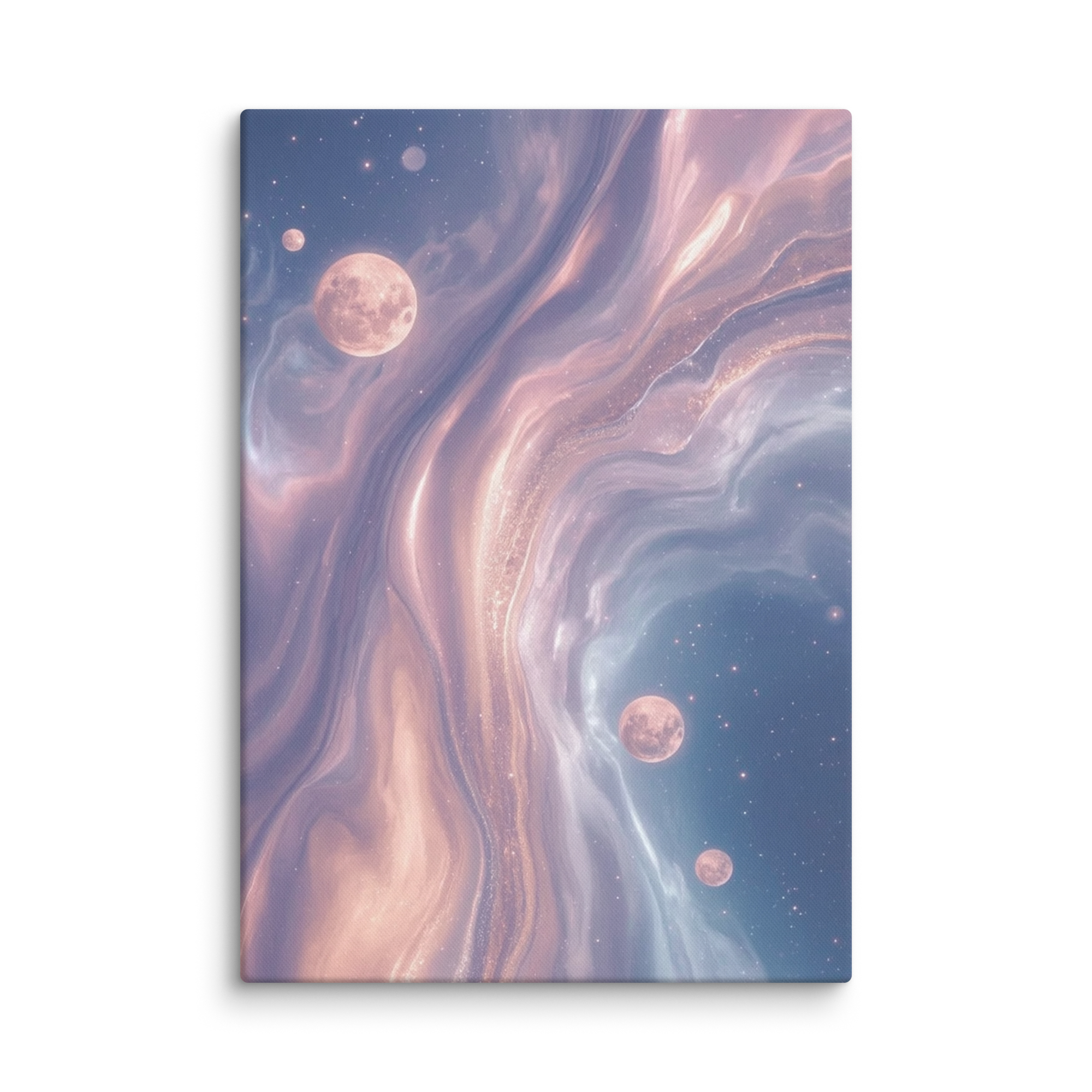 Transform your room into a calming retreat. This artwork features dreamy nebula-like swirls in blush pink, golden beige, and serene... Read more